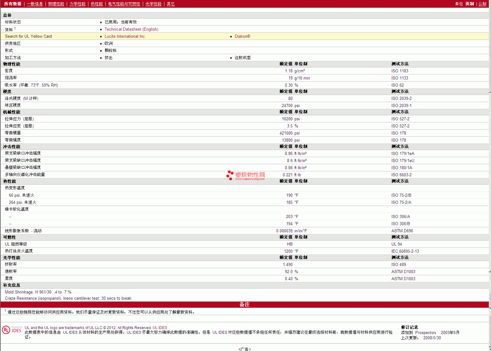 需了解Diakon PMMA CLG340 物性表更多详情,材质证明、ROHS(SGS)报告、物质安全资料表(MSDS)、UL黄卡等,最新行情报价等可来电咨询:赵先生:13424755533或QQ: 27660005