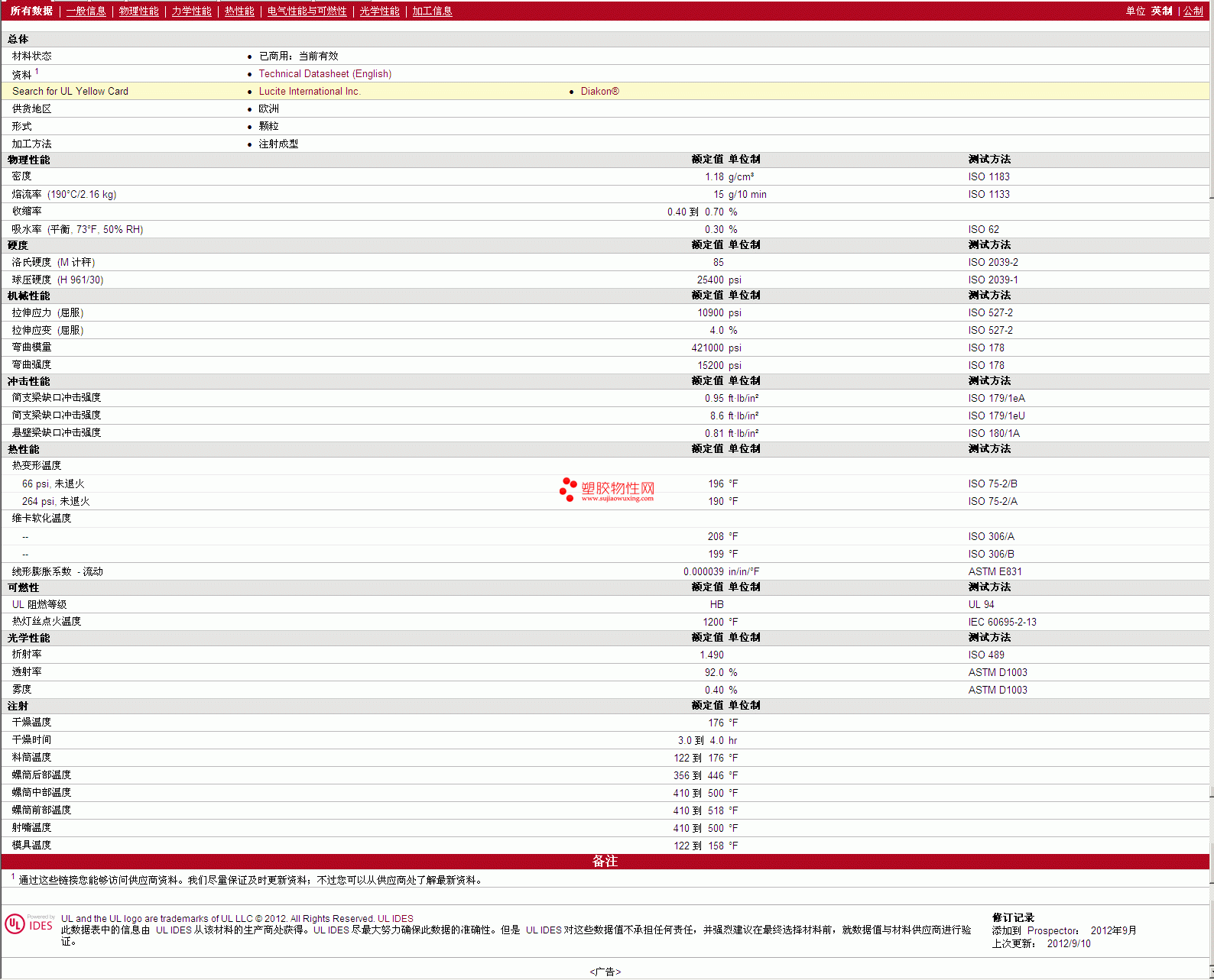 需了解Diakon PMMA CLG356U1 物性表材质证明、ROHS(SGS)报告、物质安全资料表(MSDS)、UL黄卡等可来电咨询:赵先生:13424755533或QQ: 27660005