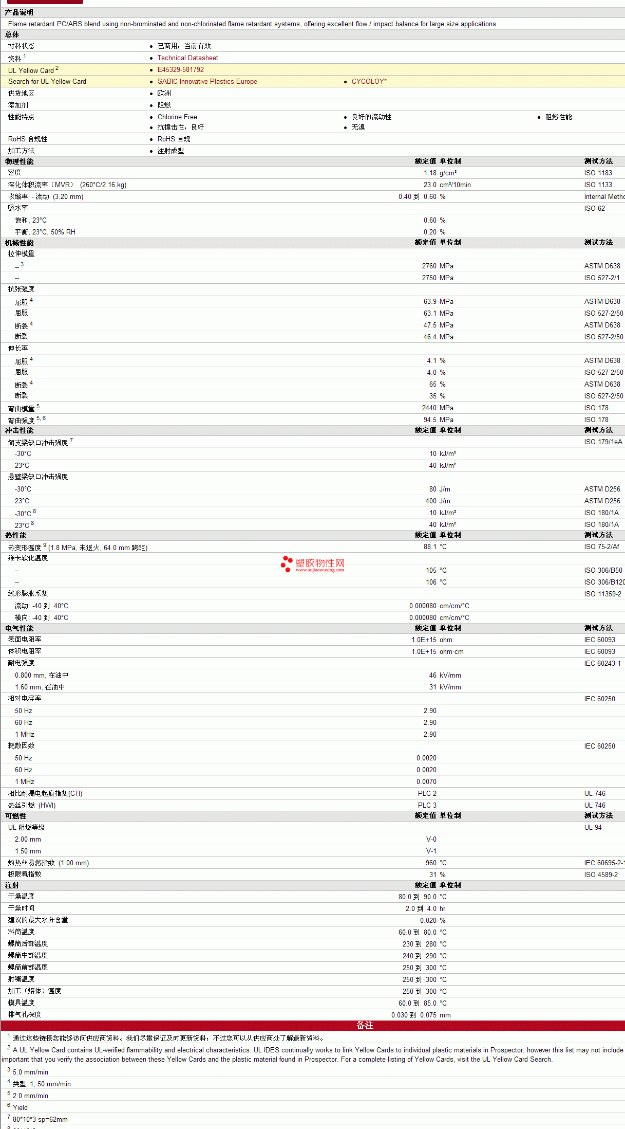 CYCOLOY pc/ABSCY5100 Resin物性表更多资料见下图