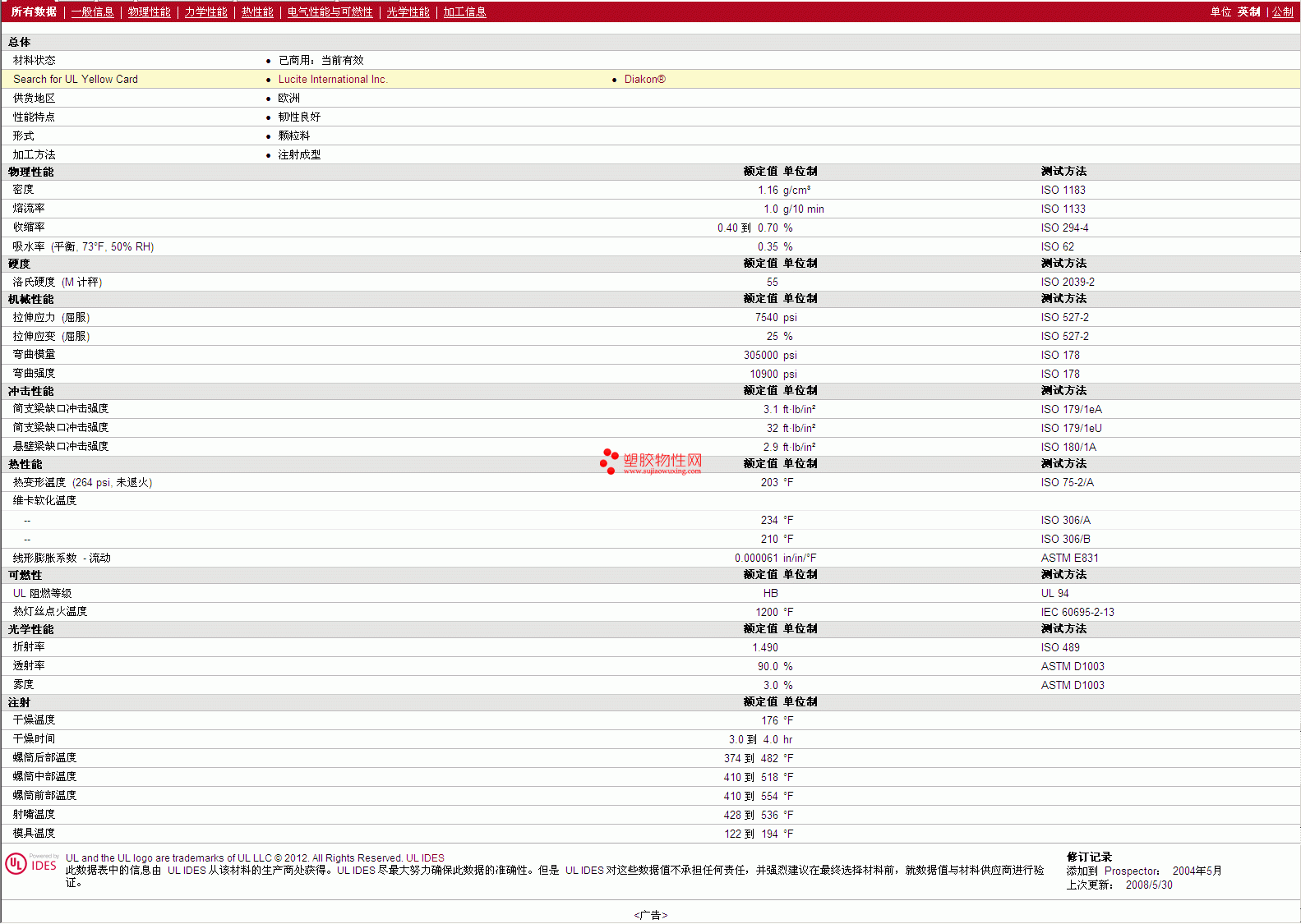 需了解Diakon PMMA ST35N8 物性表材质证明、ROHS(SGS)报告、物质安全资料表(MSDS)、UL黄卡等可来电咨询:赵先生:13424755533或QQ: 27660005