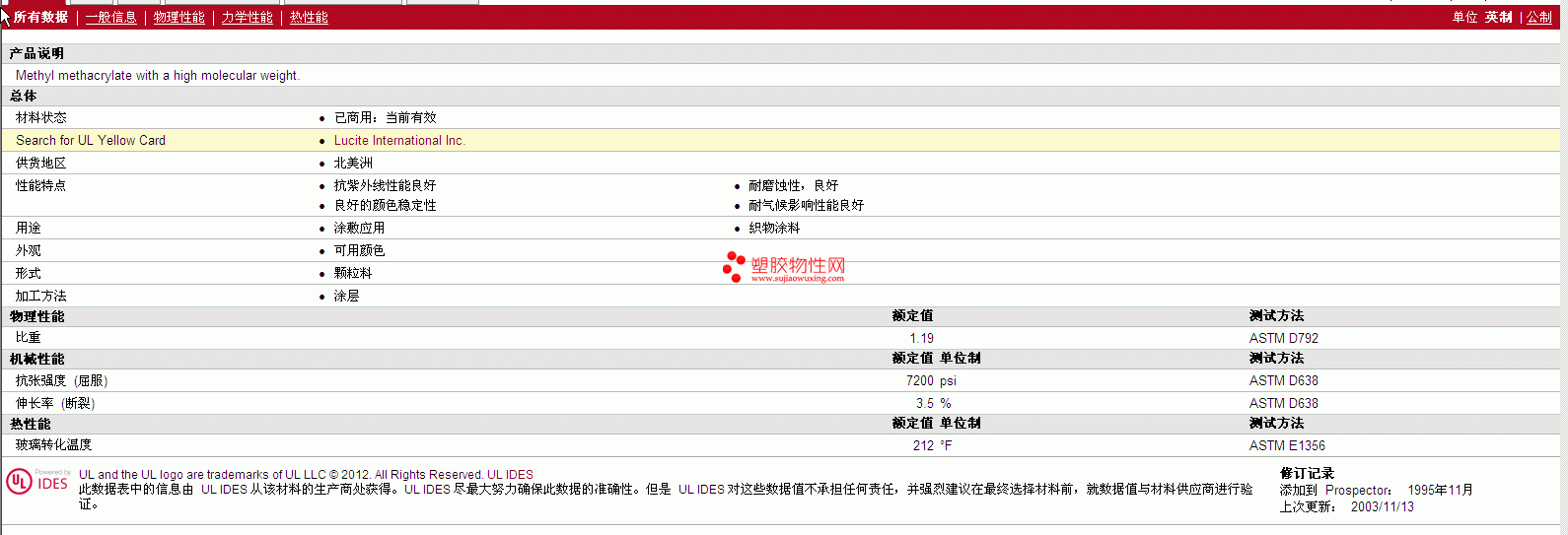 更多Elvacite PMMA 2021 物性表报价,图片、材质证明、UL黄卡、物质安全资料表(MSDS)等可来电咨询赵先生:13424755533或QQ: 27660005