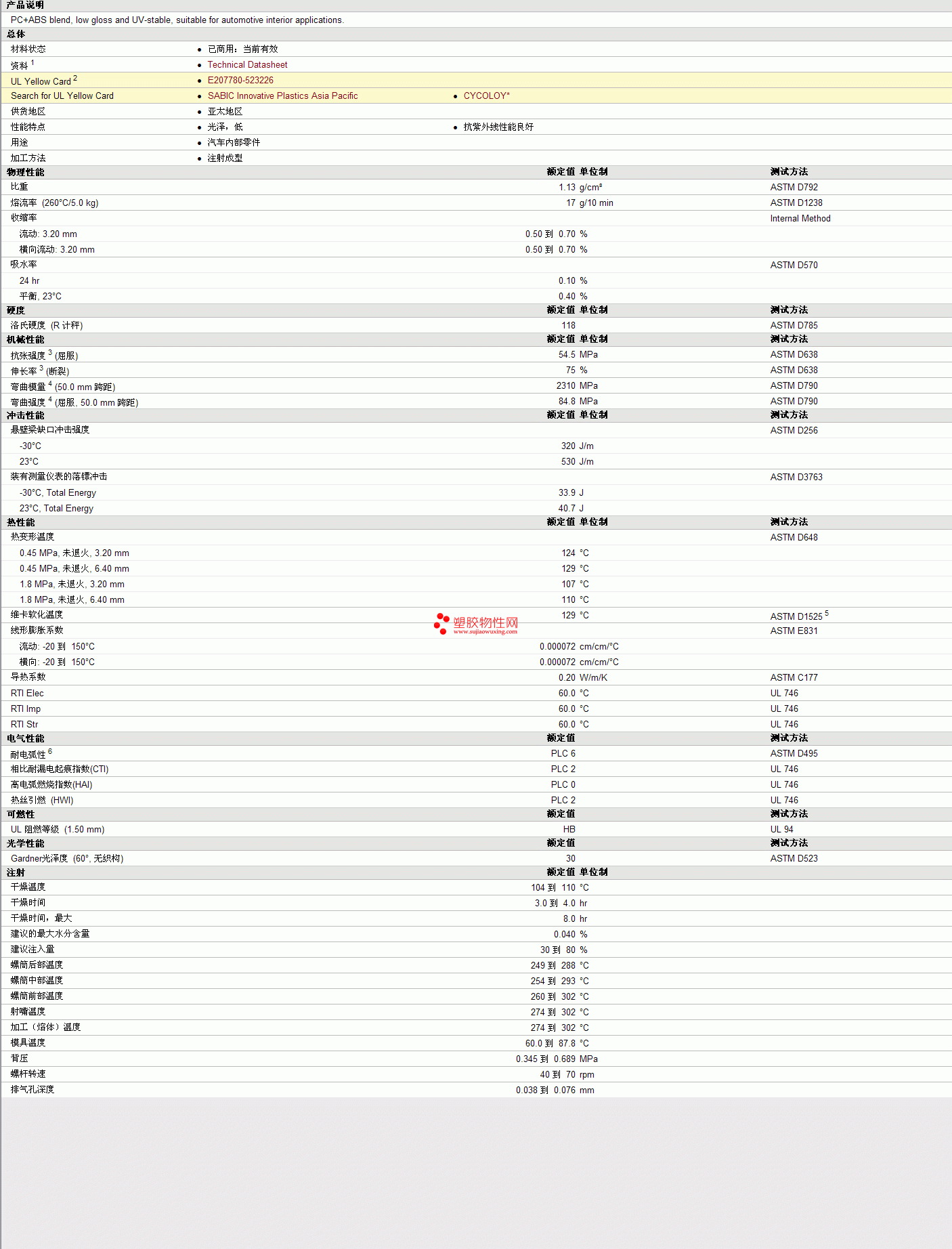 CYCOLOY pc/ABS LG9000 Resin物性表更多资料见下图