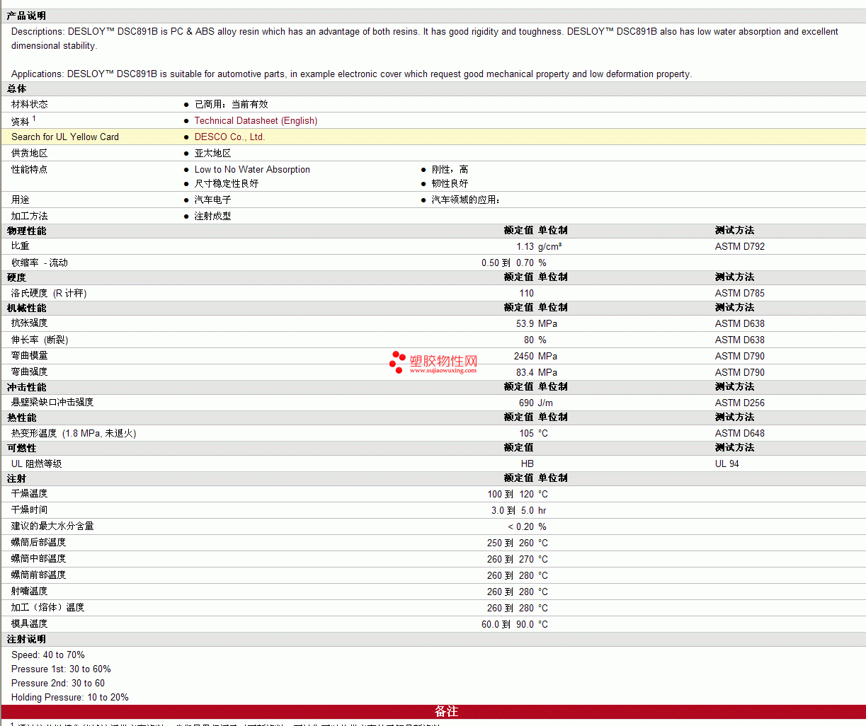 DESLOY PC/ABSDSC891B 塑胶原料更多详情,PC专家,可来电咨询赵先生:13424755533 QQ:27660005