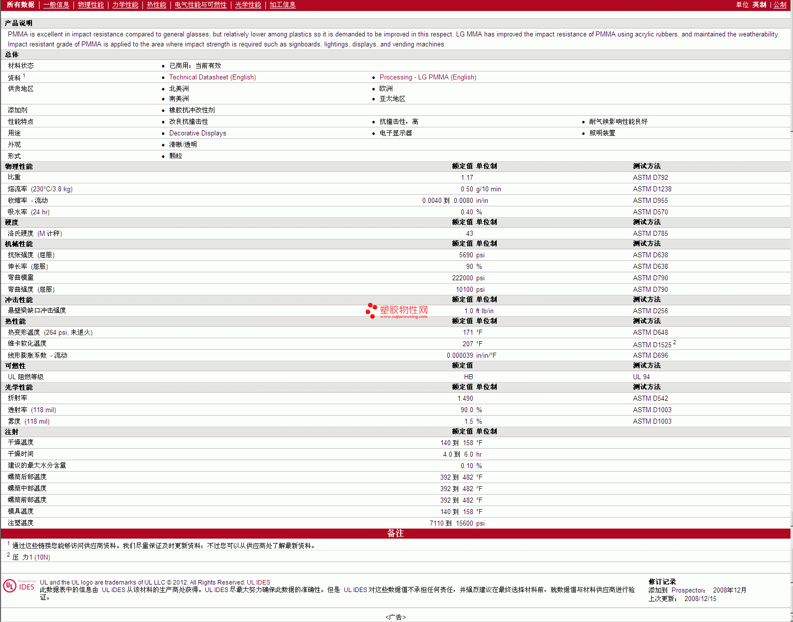 需了解 LG PMMA HI 925HS 物性表材质证明、ROHS(SGS)报告、物质安全资料表(MSDS)、UL黄卡等可来电咨询:赵先生:13424755533或QQ: 27660005