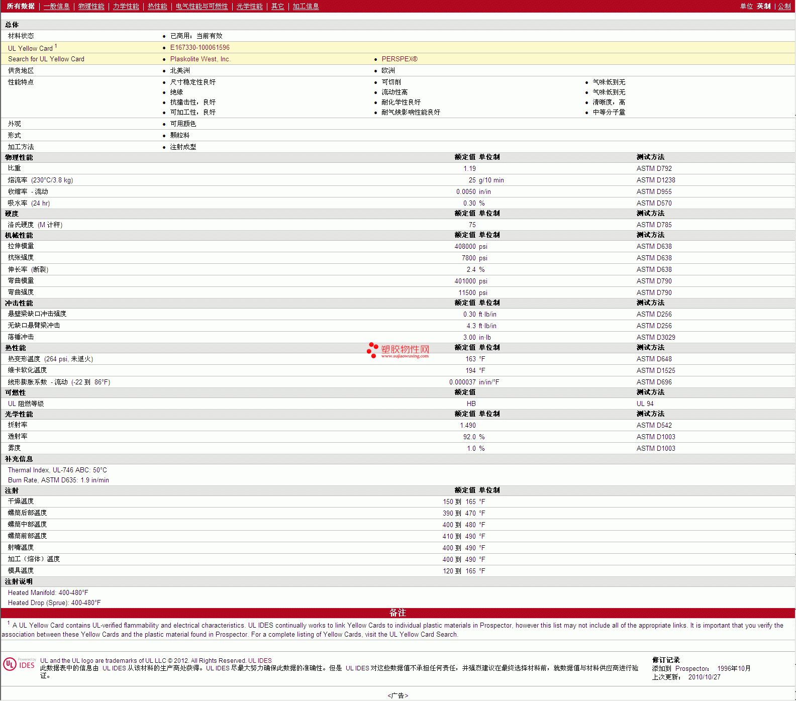 如需了解PERSPEX PMMA CP-41 物性表更多详情,ROHS(SGS)报告、物质安全资料表(MSDS)、材质证明、UL黄卡等,最新行情报价等可来电咨询:赵先生:13424755533或QQ: 27660005