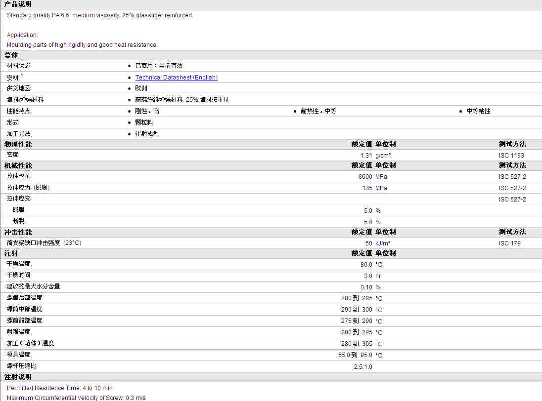 TEREZ PA66 7510 GF 25物性表资料详细内容如图