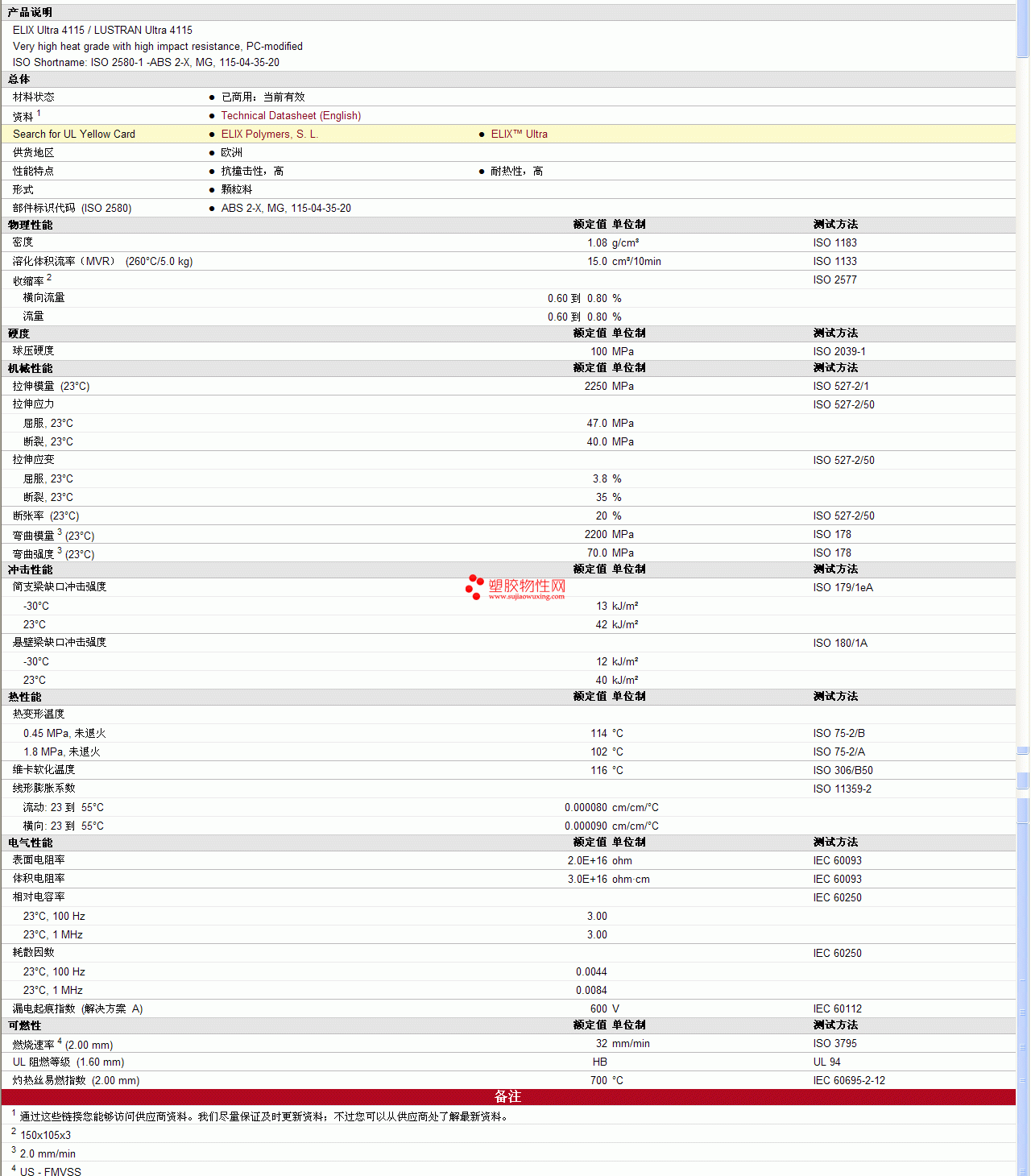 | 溶化体积流率(MVR) (260°C/5.0 kg) | 15.0 | cm³/10min | ISO 1133 |