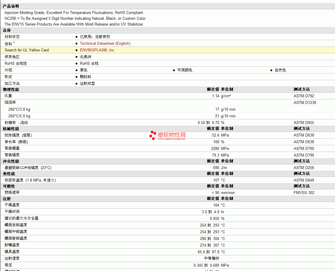 ENVIROLOY PC/ABS ENV15-NC290 物性表见图片