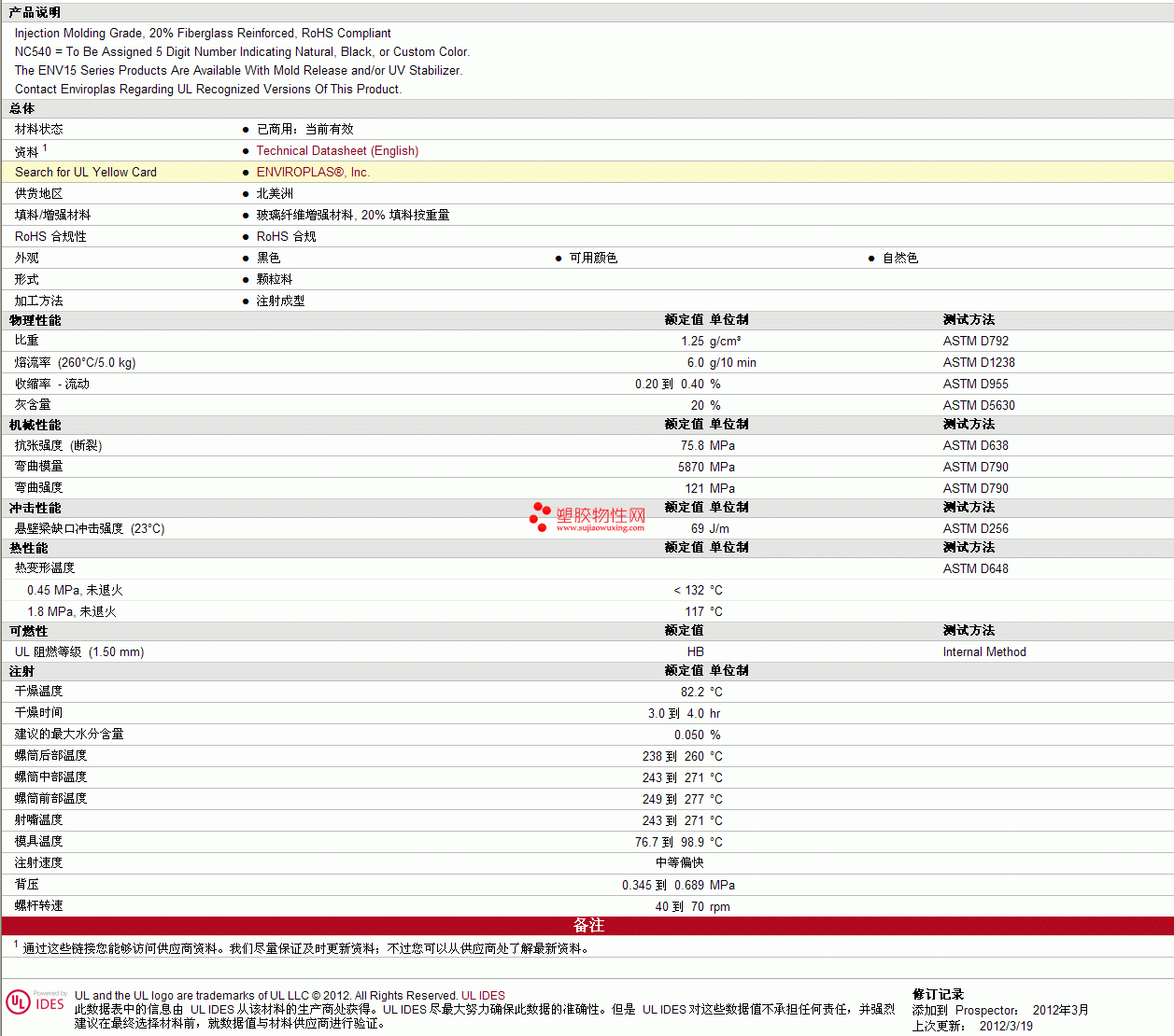 ENVIROLOY PC/ABS ENV15-NC540 物性表见图片