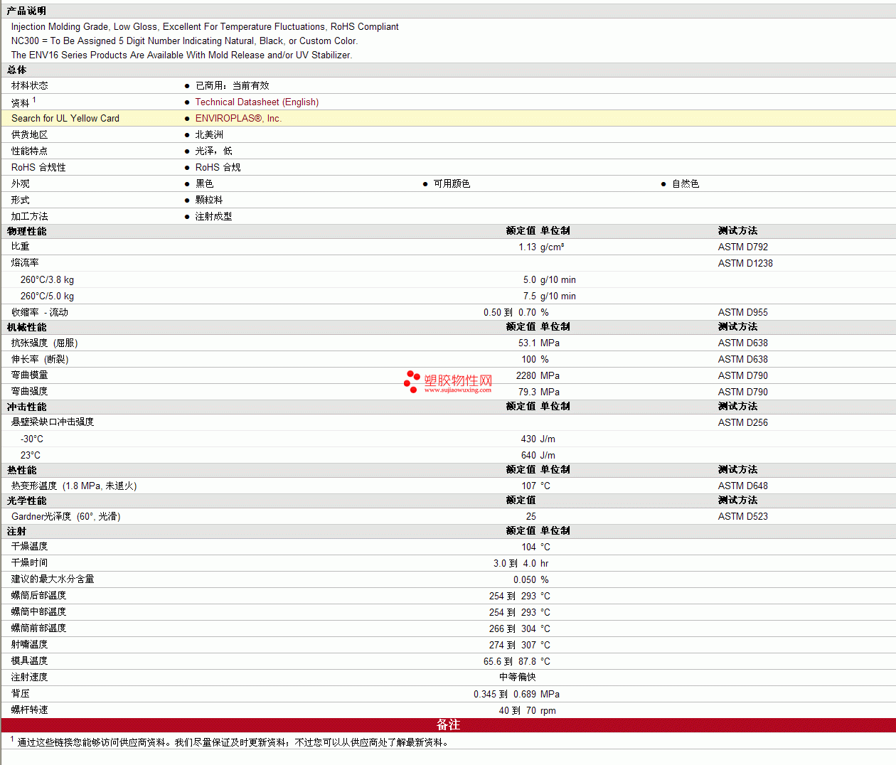 ENVIROLOY PC/ABS ENV16-NC300物性表见图片