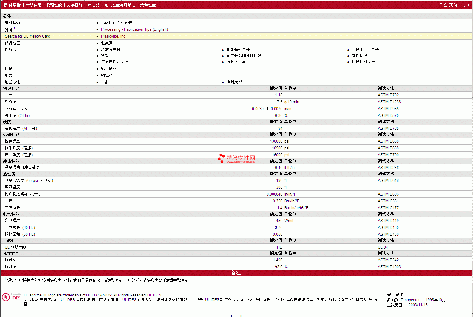 如需了解Plaskolite Acrylic PMMA PL-76 物性表更多详情,ROHS(SGS)报告、物质安全资料表(MSDS)、材质证明、UL黄卡等,最新行情报价等可来电咨询:赵先生:13424755533或QQ: 27660005
