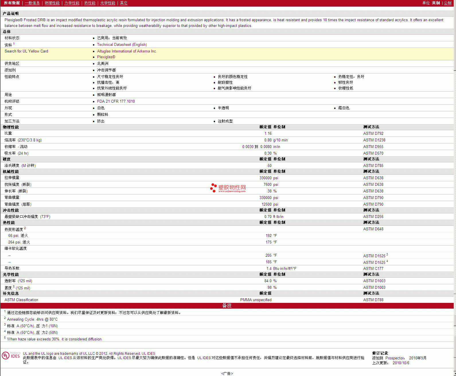 需了解Plexiglas PMMA Frosted DR 物性表更多详情,材质证明、ROHS(SGS)报告、物质安全资料表(MSDS)、UL黄卡等,最新行情报价等可来电咨询:赵先生:13424755533或QQ: 27660005