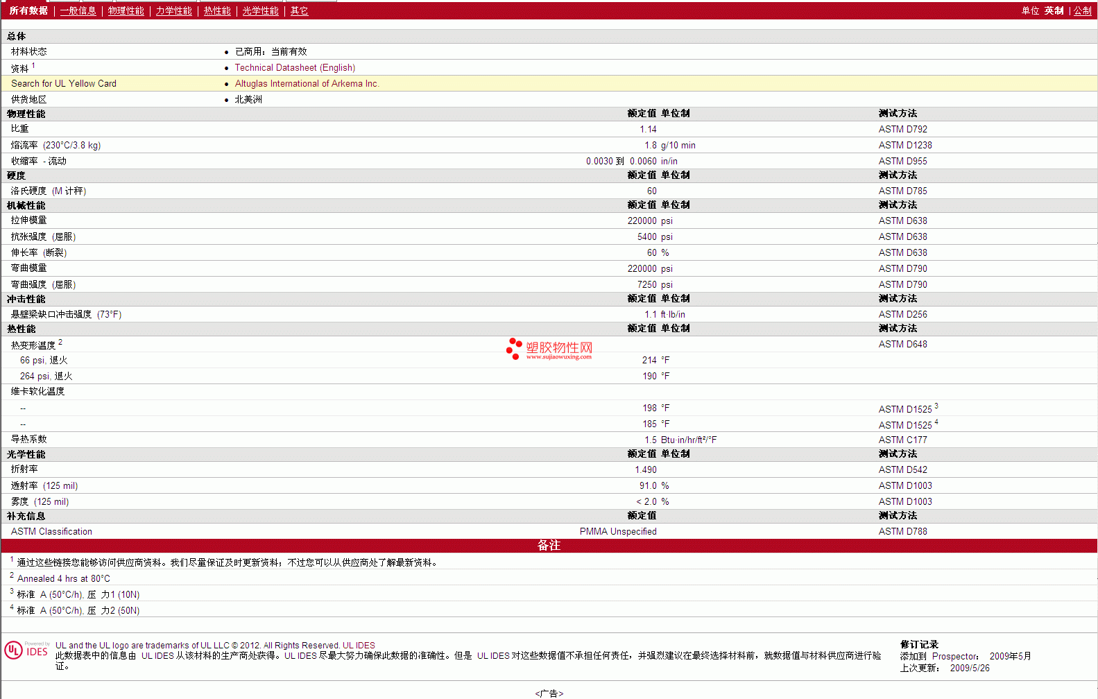 需了解PlexTuf PMMA 2000 物性表材质证明、ROHS(SGS)报告、物质安全资料表(MSDS)、UL黄卡等可来电咨询:赵先生:13424755533或QQ: 27660005
