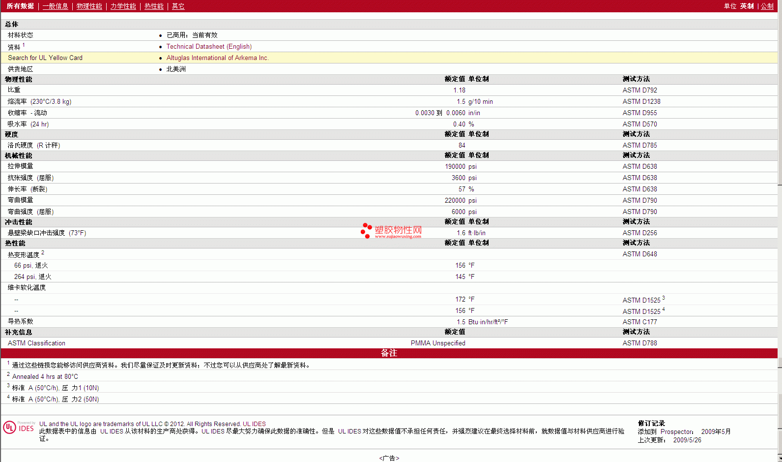 更多PlexTuf L PMMA 66119 物性表报价,图片、材质证明、UL黄卡、物质安全资料表(MSDS)等可来电咨询赵先生:13424755533或QQ: 27660005