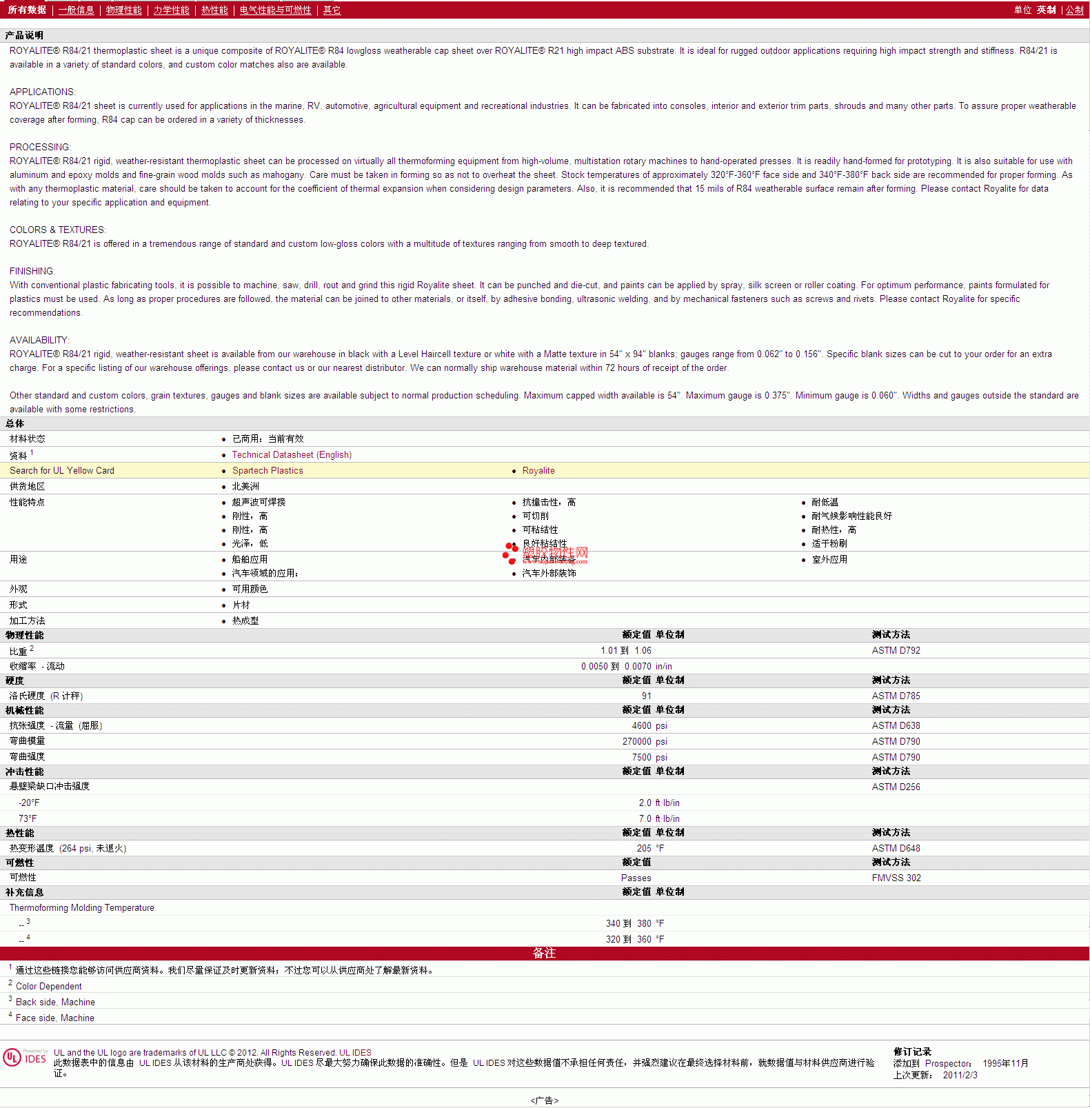 需要了解Royalite PMMA R84/21 更多详情,赵先生:13424755533或QQ: 27660005