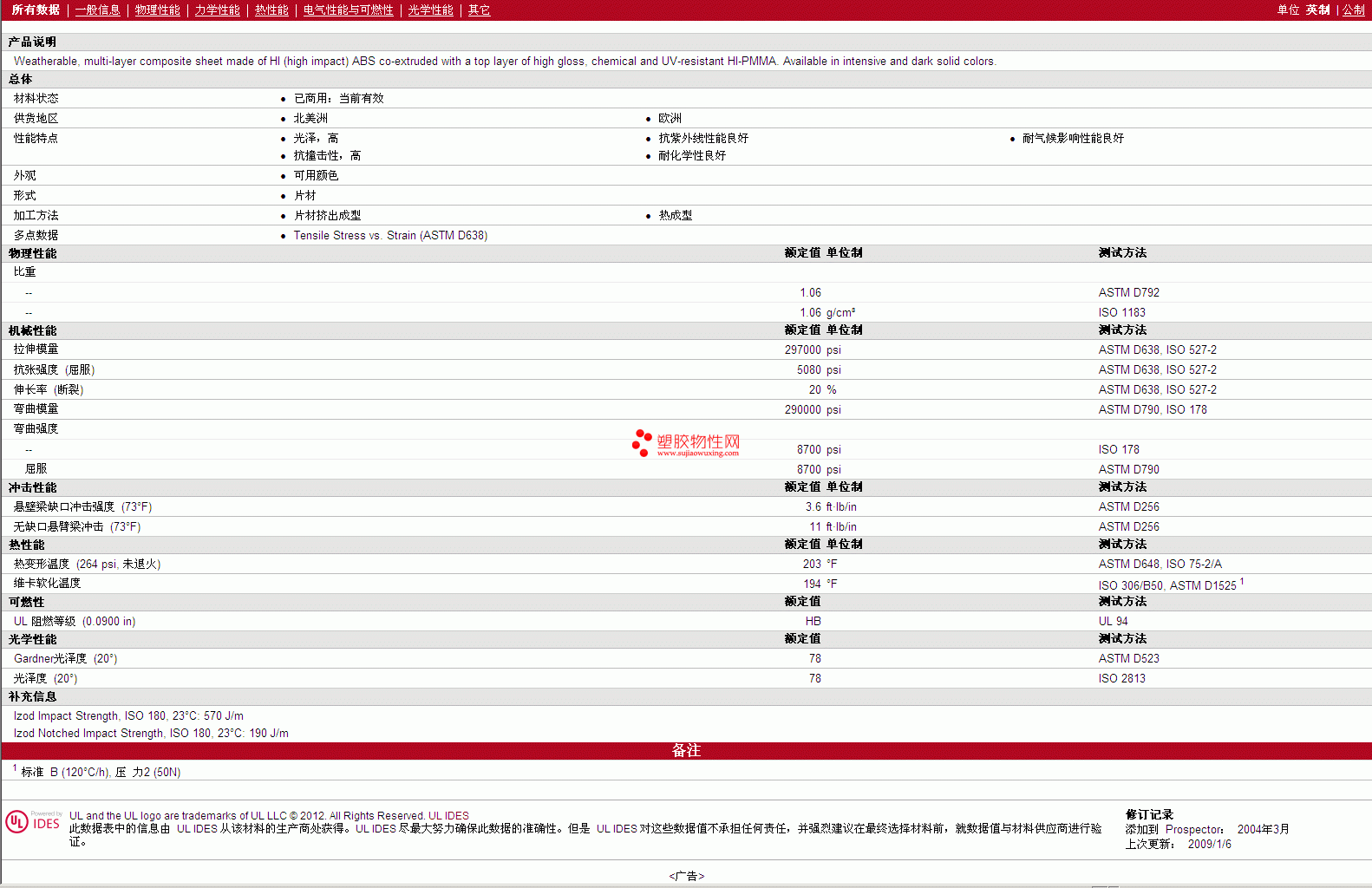 更多SENOSAN PMMA AM50C Solar Plus 物性表报价,图片、材质证明、UL黄卡、物质安全资料表(MSDS)等可来电咨询赵先生:13424755533或QQ: 27660005
