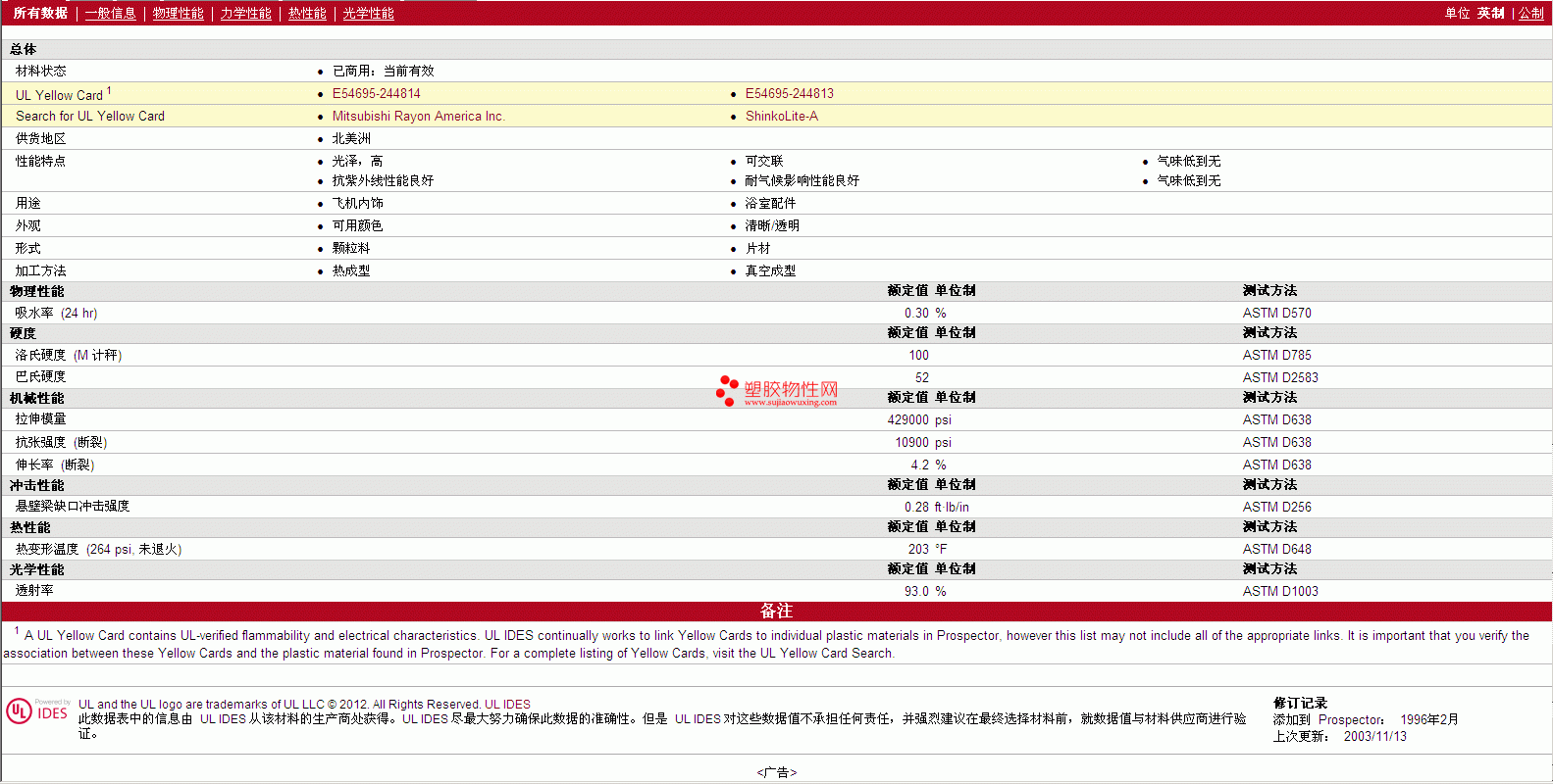 需了解ShinkoLite PMMA A PX200 物性表更多详情,材质证明、ROHS(SGS)报告、物质安全资料表(MSDS)、UL黄卡等,最新行情报价等可来电咨询:赵先生:13424755533或QQ: 27660005