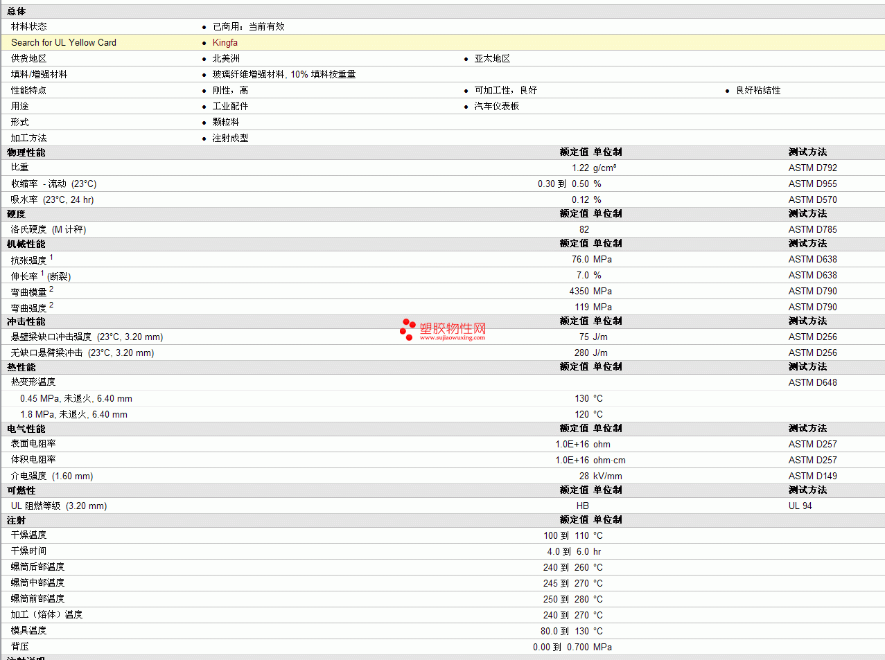 Kingfa pc/ABS JH-R2G10 P60物性表更多资料见下图