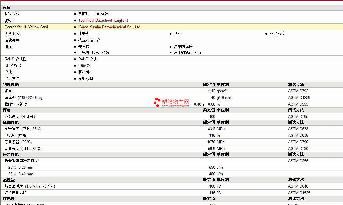 Kumho EP PC/ABS HAC-8244物性表见图片