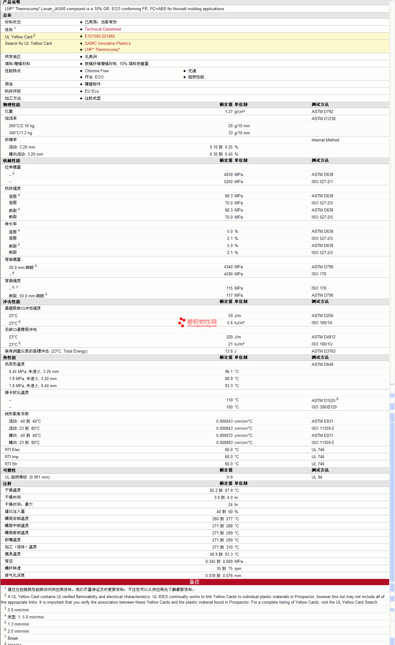 LNP Thermocomp Lexan_JK500物性表 见图片
