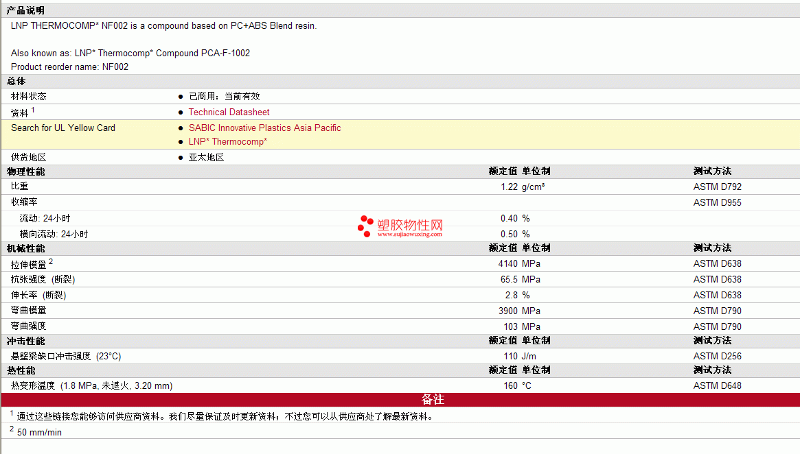 LNP ThermocompPC/ABS NF002物性表 见图片