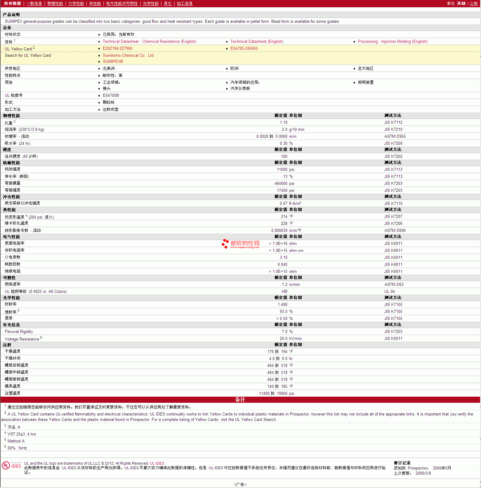 需了解SUMIPEX PMMA MH 物性表更多详情,材质证明、ROHS(SGS)报告、物质安全资料表(MSDS)、UL黄卡等,最新行情报价等可来电咨询:赵先生:13424755533或QQ: 27660005