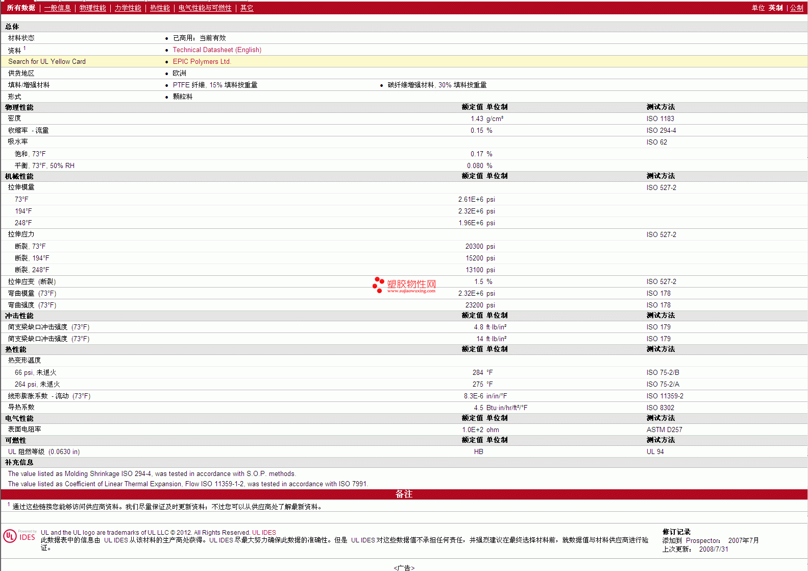 需了解TRIBOCOMP PC CF30 TS0 物性表材质证明、ROHS(SGS)报告、物质安全资料表(MSDS)、UL黄卡等可来电咨询:赵先生:13424755533或QQ: 27660005