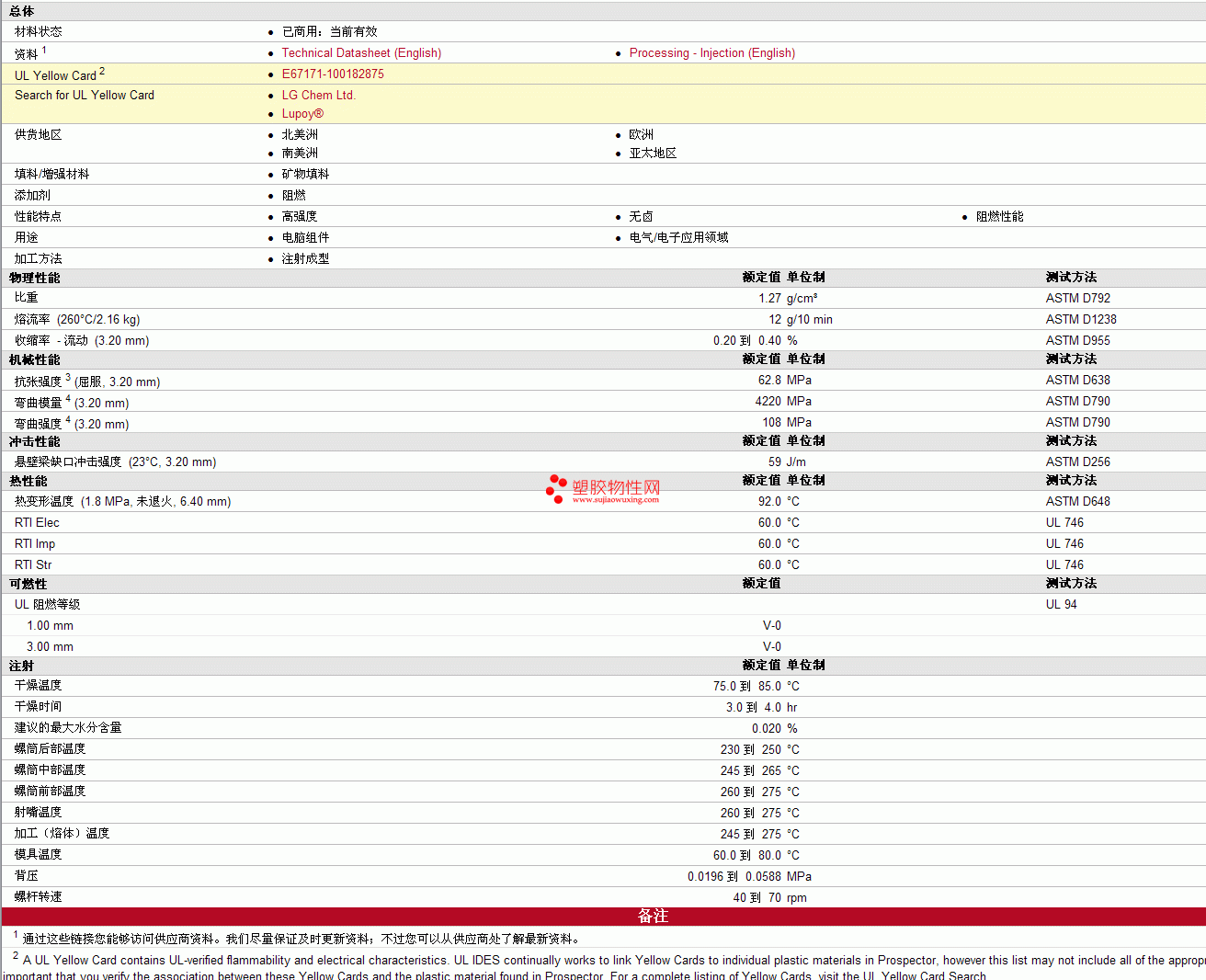 Lupoy pc/ABS ER5151RFA物性表 更多资料见下图