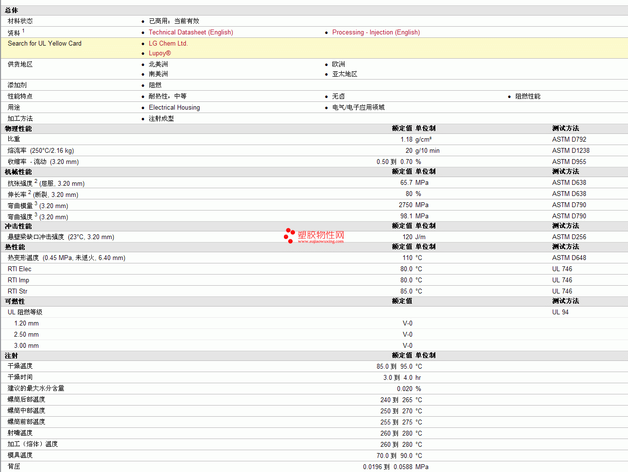 Lupoy pc/ABSGN5001RFP物性表更多资料见下图