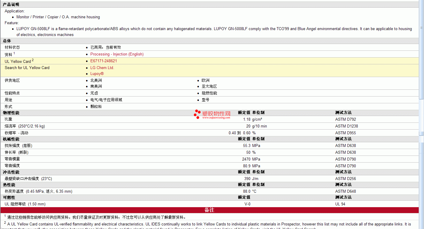 Lupoy pc/ABS GN5008LF物性表更多资料见下图