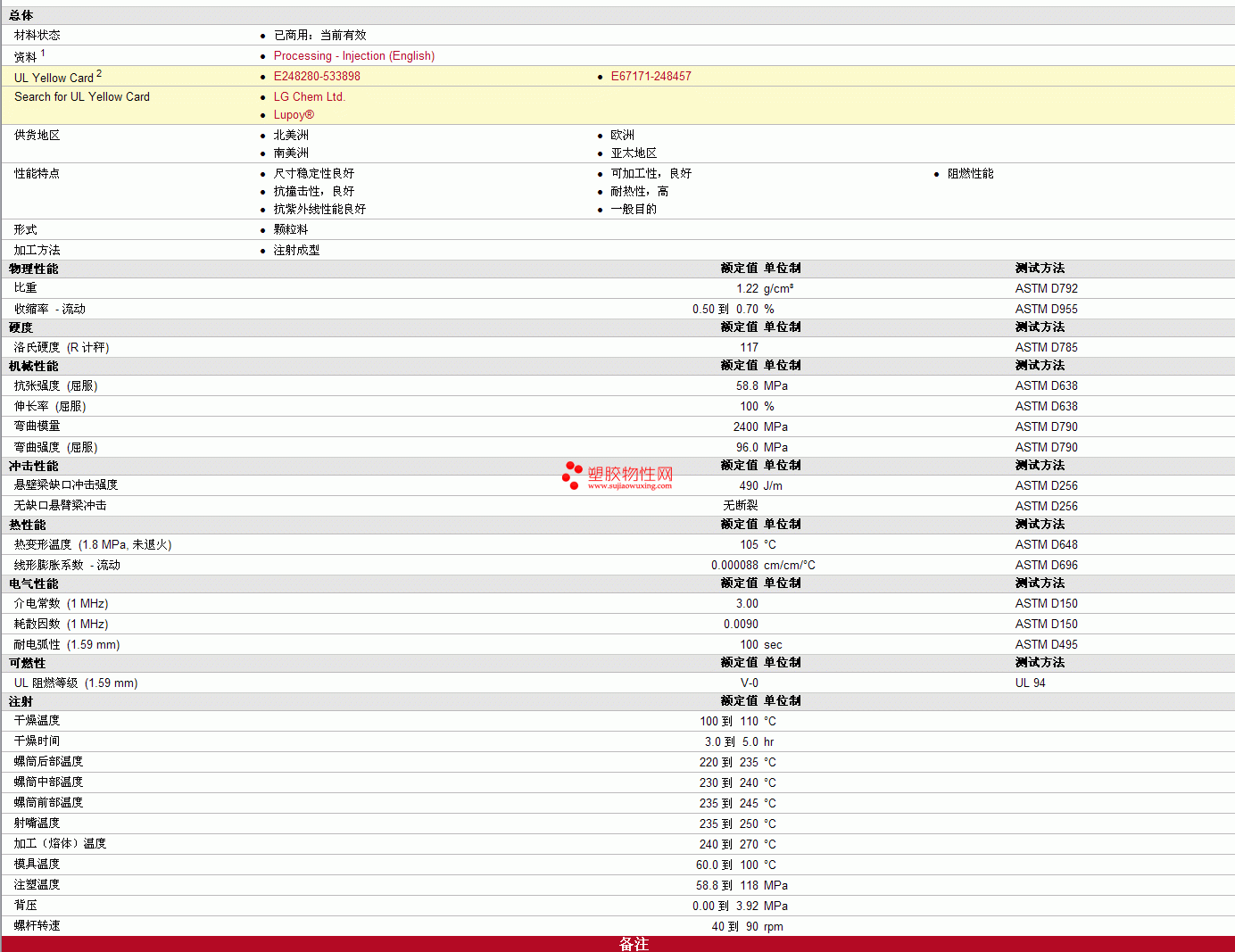 Lupoypc/ABS GP5001AF物性表更多资料见下图