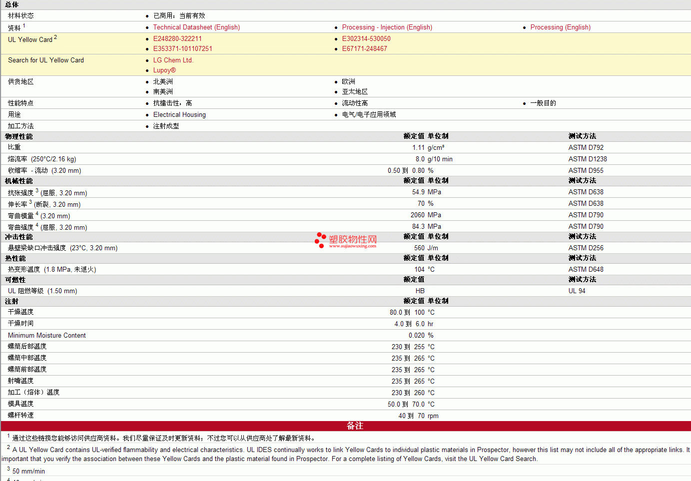 Lupoy pc/ABS HI5002A物性表 更多资料见下图