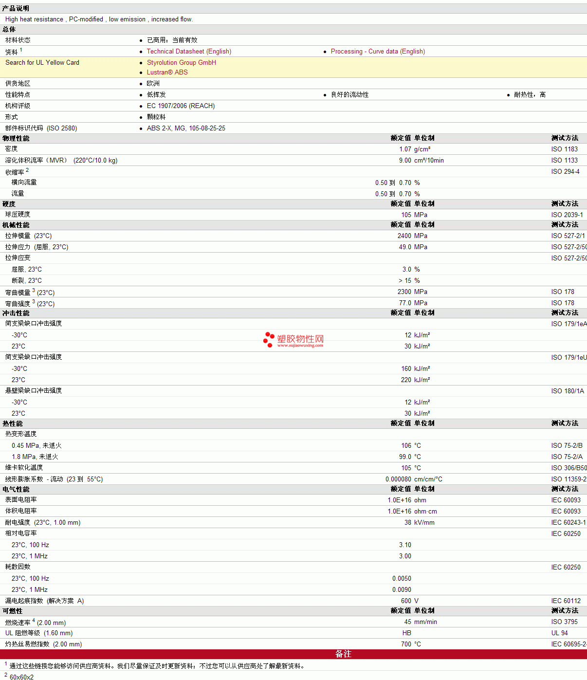 Lustran pc/ABS ABS H801物性表更多资料见下图