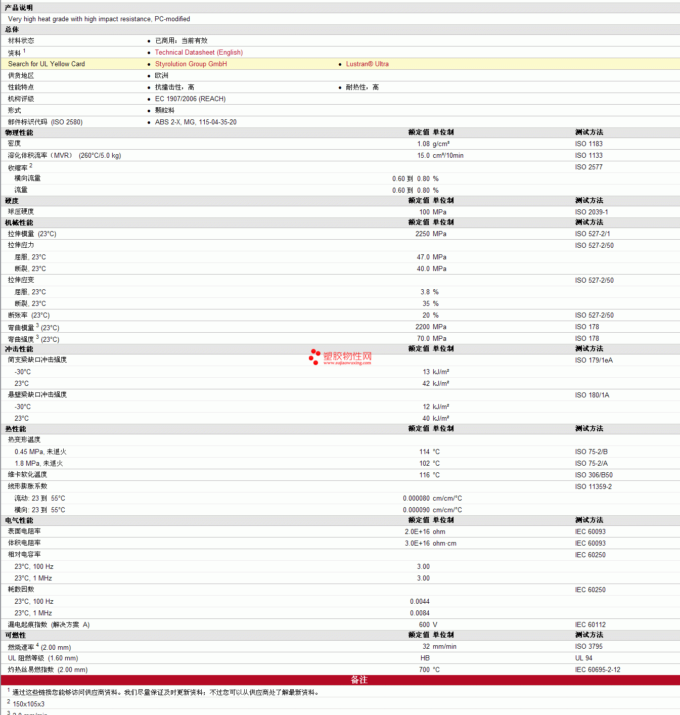Lustran l pc/ABS tra 4115物性表更多资料见下图