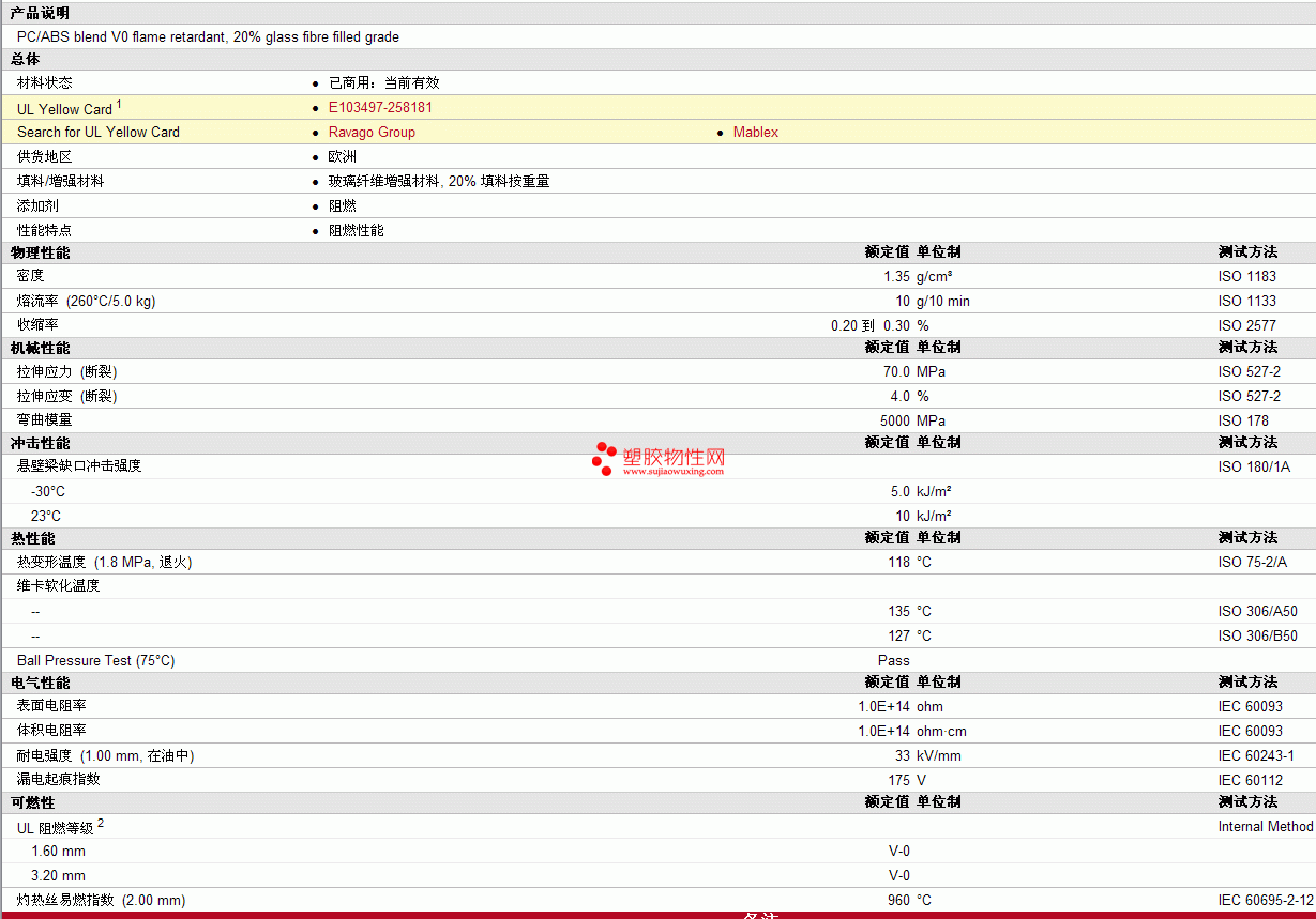 Mablex pc/ABS 319V0物性表 更多资料见下图