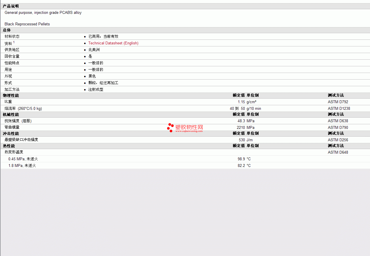 NEXUS Reprocessed PC/ABS RBK物性表 更多资料见下图