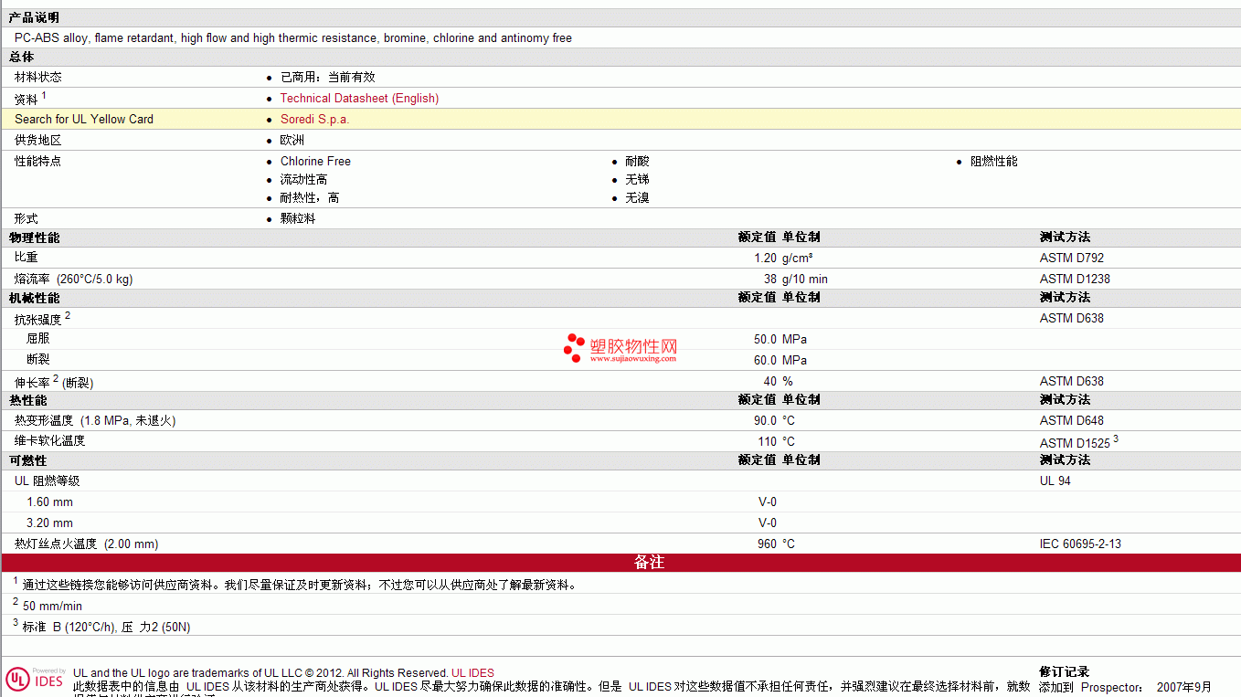Acrylonitrile Butadiene Styrene/Polycarbonate (ABS/PC) HM-1150(+) UL黄卡