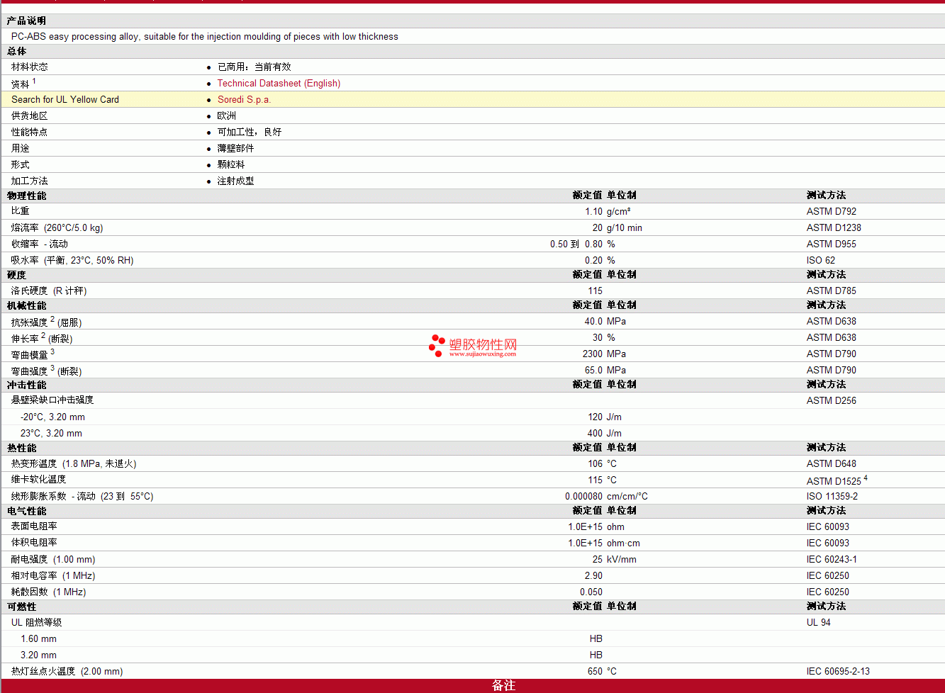 Niblend pc/ABSS45物性表更多资料见下图