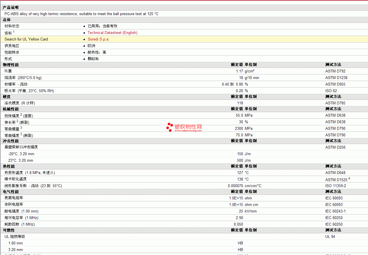 | 机械性能 | 额定值 | 单位制 | 测试方法 |