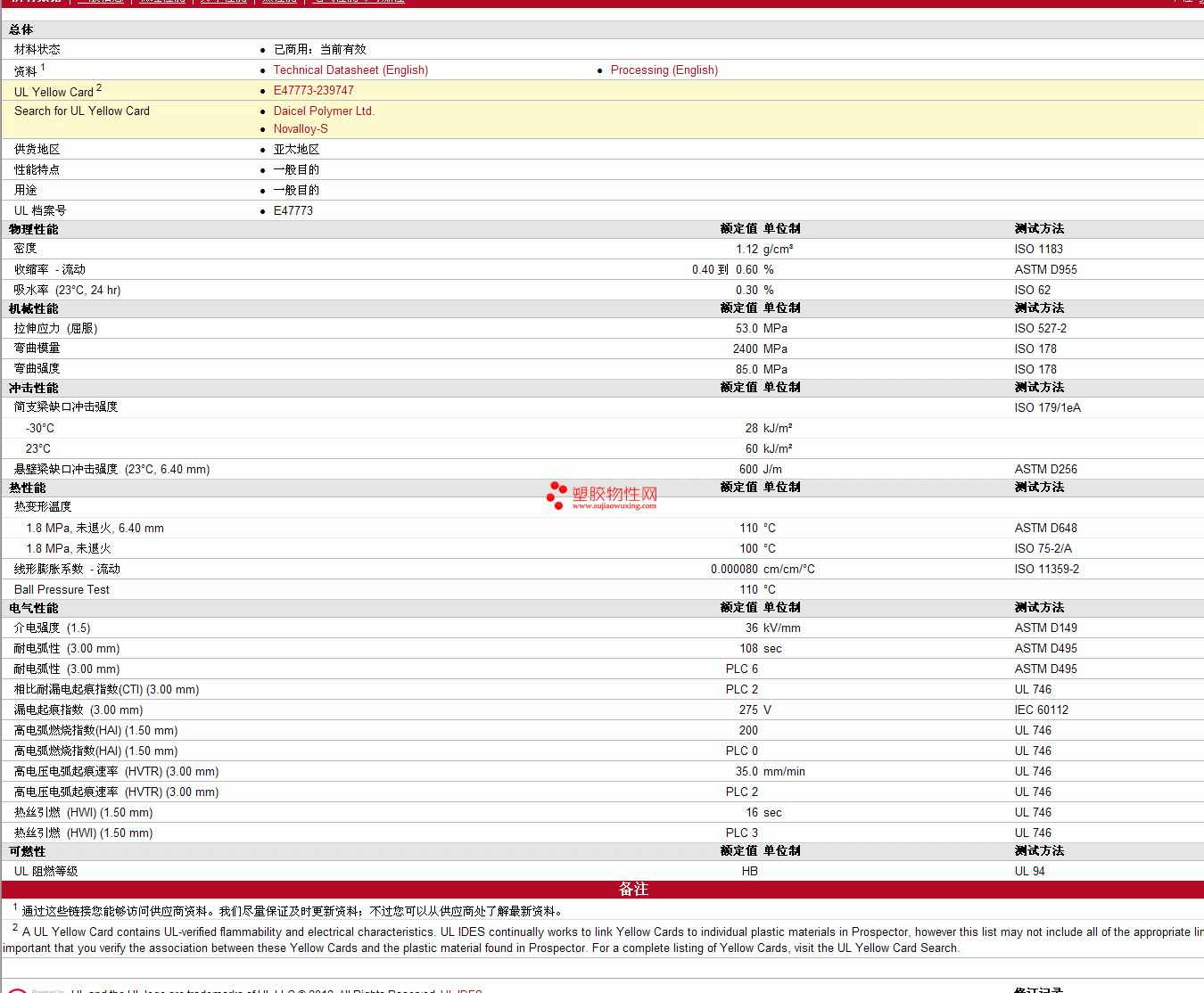 Novalloy-S pc/ABS S1100物性表 更多资料见下图