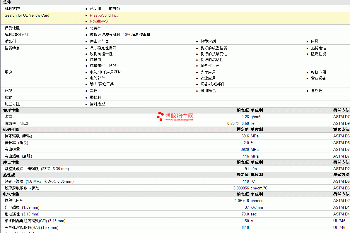 Novalloy-S pc/ABS S3210物性表更多资料见下图
