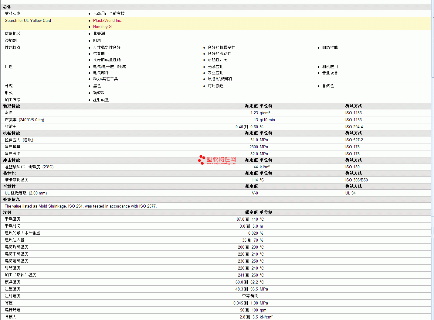 Novalloy-S pc/ABS S4100V物性表更多资料见下图