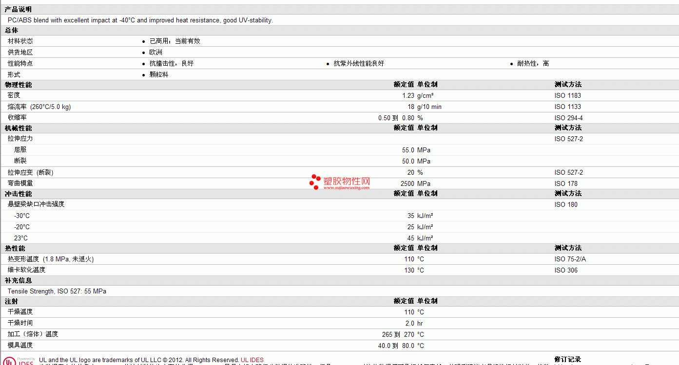 P-BLENDpc/ABS X85物性表更多资料见下图