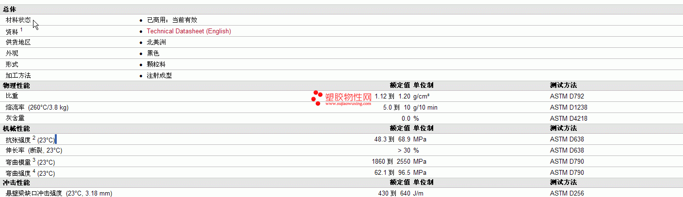 | 48.3 到 68.9 | MPa | ASTM D638 | |