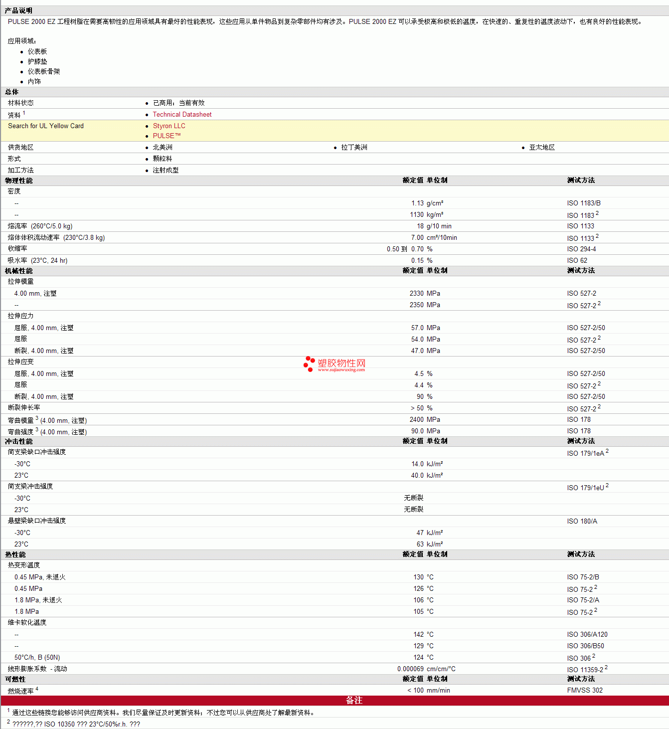 PULSE pc/ABS 2000 EZ物性表更多资料见下图
