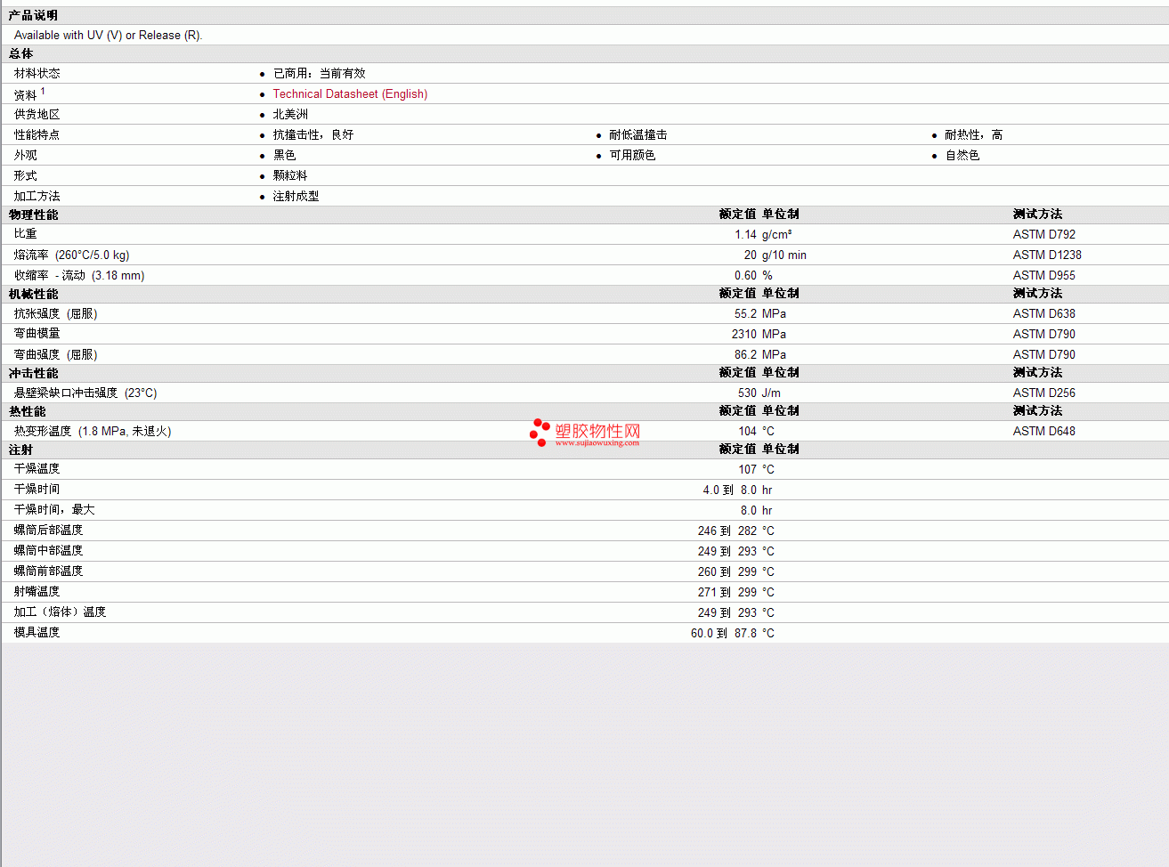 其他工程塑料物性表