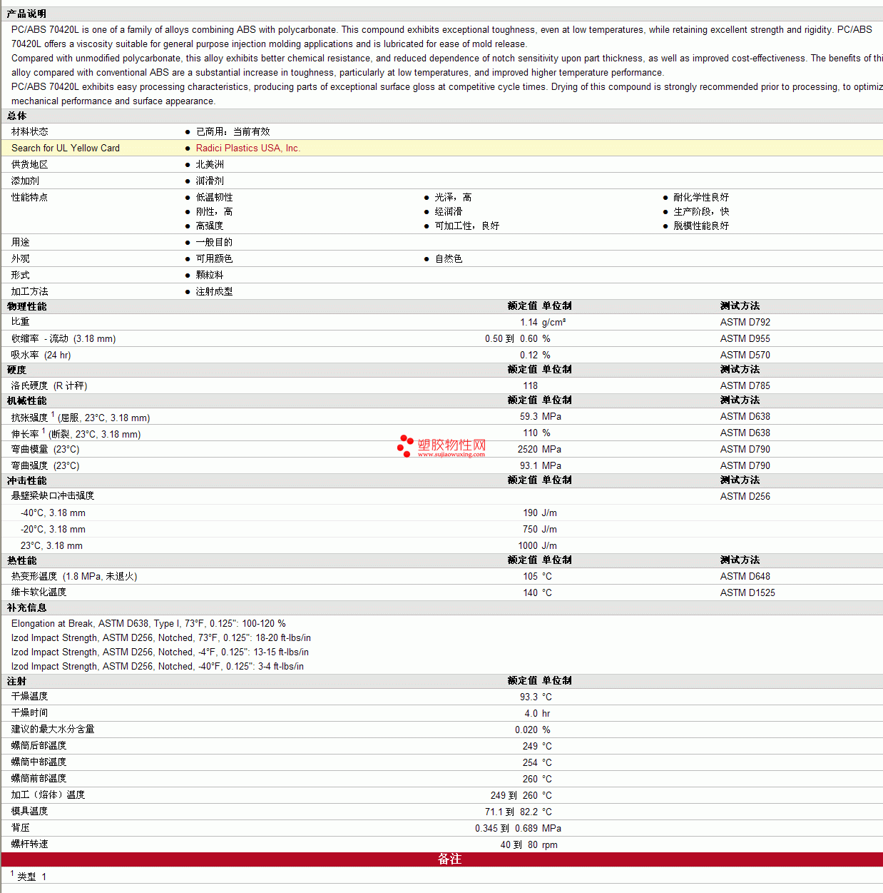 Radici Compounds PC/ABS 70420L塑胶原料更多详情,PC专家,可来电咨询赵先生:13424755533 QQ:27660005