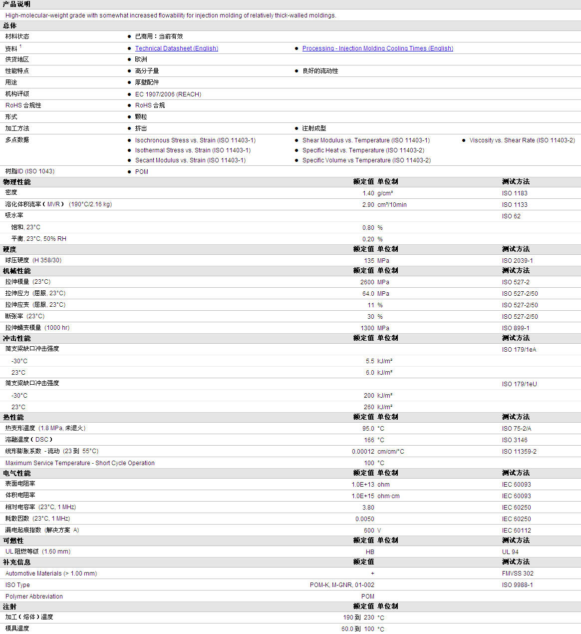 | 溶化体积流率(MVR) (190°C/2.16 kg) | 2.90 | cm³/10min | ISO 1133 |