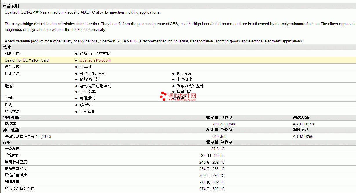 Spartech Polycom SC1A7-1015物性表图片