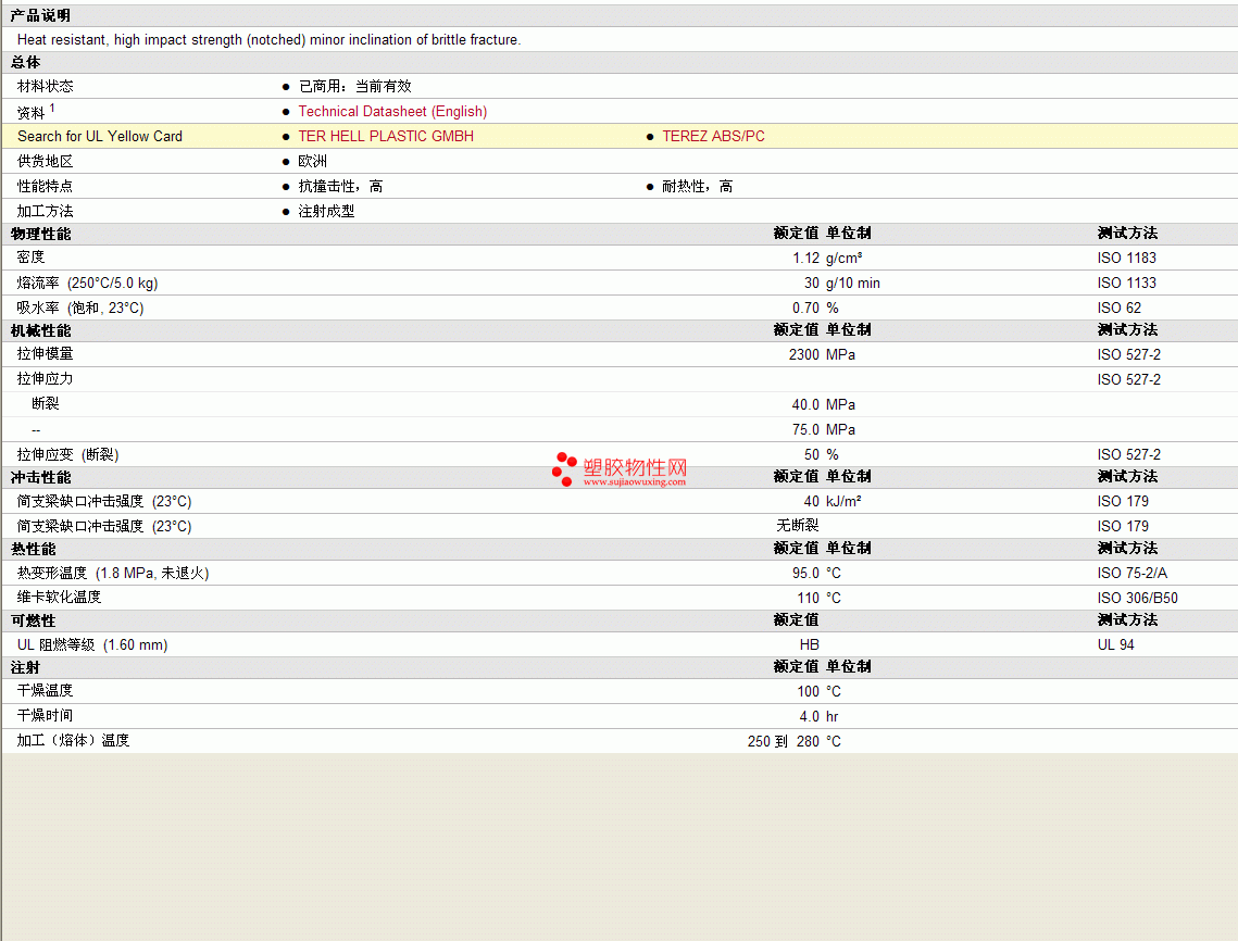 TEREZ ABS/PC Blend 1000物性表图片
